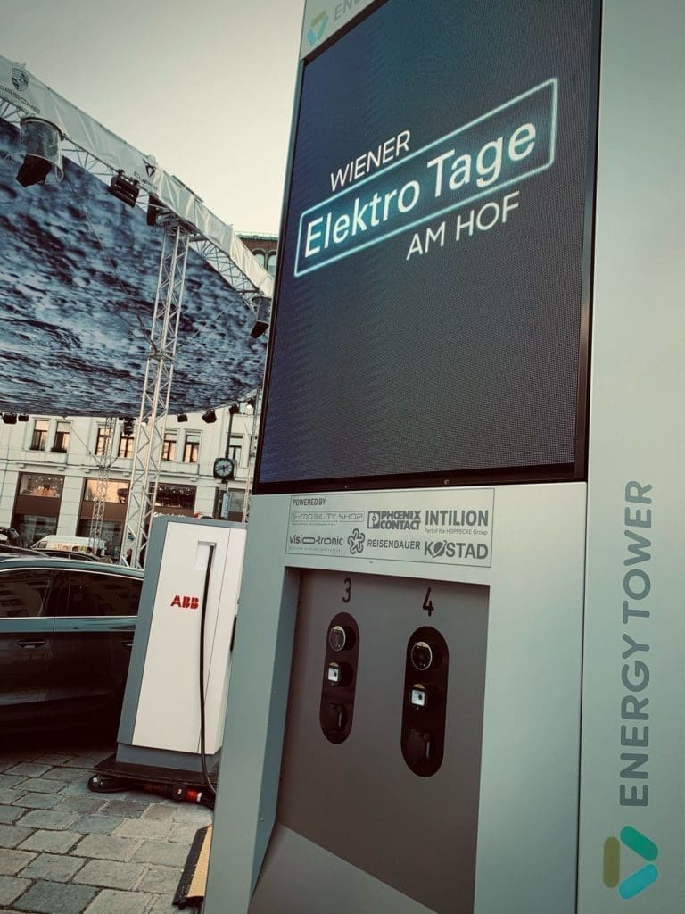 Die INTILION GmbH präsentierte auf den Wiener Elektro Tagen zusammen mit den Partnern Phoenix Contact, Visio-Tronic GmbH, Reisenbauer Solutions GmbH und e-bank erstmals die neu entwickelte Ladelösung: den Energy Tower. Dieser vereint die boomenden Geschäftsfelder der Elektromobilität und digitalen Außenwerbung.
